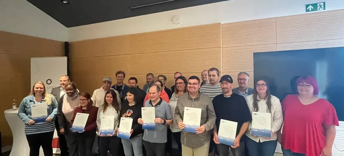 Die feierliche Übergabe der Zertifikate erfolgte durch Thomas Latz, Vorstandsvorsitzender des Landesverbands Arbeit-Bildung-Teilhabe Saarland e. V., Michael Schneider, Geschäftsführer des Verbands, sowie Jürgen Tilk, Leiter Weiterbildung der IHK Saarland. In ihren Ansprachen zeigten sich alle drei beeindruckt von der Motivation und dem Durchhaltevermögen der Teilnehmenden. Sie würdigten die Weiterbildung nicht nur als fachliche Qualifikation, sondern als einen wichtigen Schritt zu mehr beruflicher Teilhabe und Selbstbestimmung. Besonders betont wurde die Bedeutung solcher Maßnahmen für eine inklusive Arbeitswelt, in der jeder Mensch die Möglichkeit haben soll, seine Fähigkeiten zu entwickeln und einzubringen.